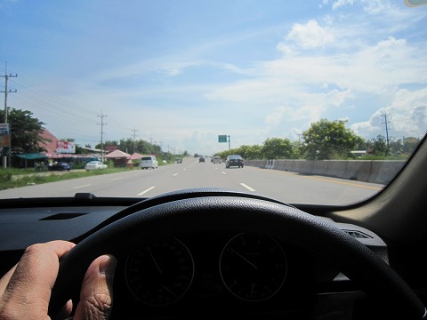 15:03 運転中 暇なので運転風景を撮ってみました。 バンコク市内だと車が多くて気を使いますが、地方部に来れば車も少なく比較的リラックスして運転はできます。 |