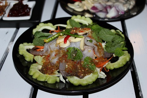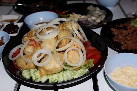 昨晩ホアヒンのナイトマーケットで食べたイカのリングフライがニンニクが混ざっていて結構旨かったので、嫁さんがここでも頼んでみました。