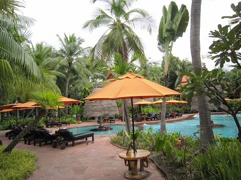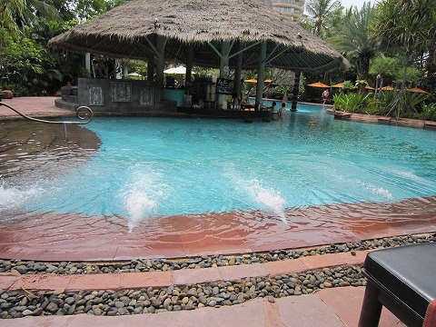 8:38 4日目の朝は タイ滞在4日目の朝は、昨日に引き続いてホアヒンに滞在中。 昨日の朝と同様、自分ひとり朝の散歩を満喫中。 (´。`) まだ、朝早いのでプールサイドにも人は居ません。 ホアヒンでの休暇も今日まで。 午後にはバンコクに戻ります。 ホテルのチェックアウトが1時までなので、朝食の後はせっかくなので、プールに入ろうと思っています。 |
