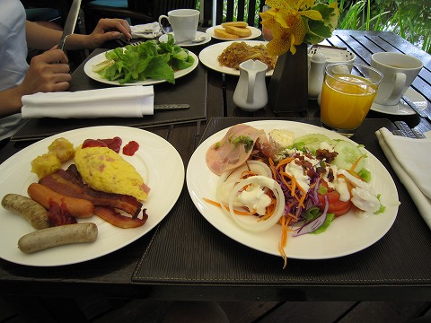 9:49 朝食は 今日も朝食は、洋食をベースにチョイス。 ソーセージやハム類が充実していて、昔行ったドイツを思い出して懐かしいですね。 そして、今日も生野菜不足を朝食で補います。 |