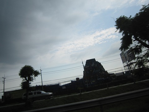 14:54 積み上げられた ホアヒンを出て2時間、バンコクの市街地が近づいてきました。 車を走らせながら、ふと右を見ると、結構な高さに何か積み上げられたものが・・・。 |
