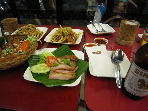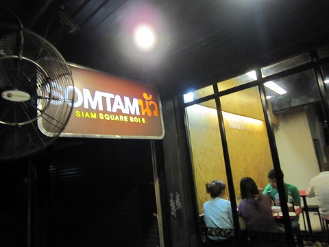 SOMTAM BTSでSiamに移動し、夕食を食べるため歩いてSiam Square にあるレストラン、SOMTAM(ソムタム)に。 ここで、嫁さんの好物の青パパイヤのサラダ、店の名前にもなっているソムタムとガヤーンを注文。 |