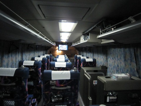 バスは3列シート、前後のスペースも広くて余裕だね。