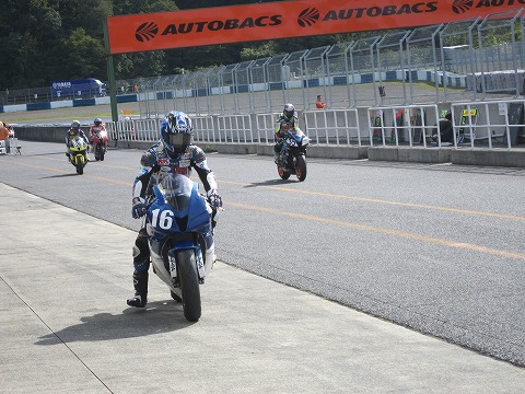 | 8:40−9:10 ART合同走行 ART合同走行では、予選、決勝に向けセッティングを詰めていきます。 メカさんとかヘルパーがある意味一番忙しい時間帯です。 公式記録としては出てこないんで、左は空欄になっちゃうんですけどね。 ライダーはピットインをしてセッティングを変更し、ピットアウトして走行。 セッティングを確認します。 |