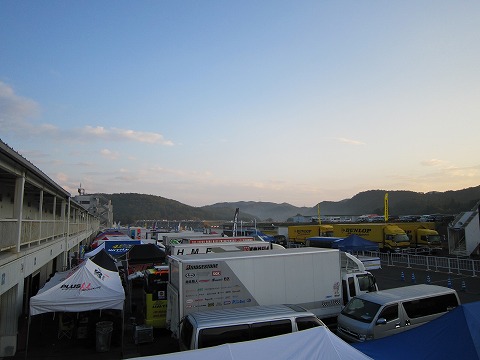 6:35 快晴 パドックに到着。 今日は、昨日と変わって天気が良い。 快晴で決勝を迎えられそうです。 |