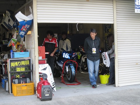 6:43 シャッターを開けると シャッターを開けると、ピットに肌寒い風が流れ込んできます。 朝のフリー走行は、昨日予選で使ったタイヤで走らなければならないので、いじることはありません。 |