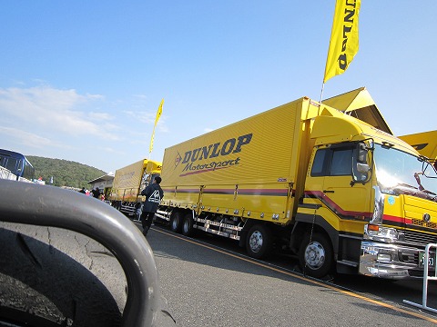 9:00 DUNLOP へ 朝のフリー走行が終わった時点で、使ったタイヤをバイクから取り外し。 DUNLOPさんでタイヤを入れ替えておいてもらいます。 これは、決勝のバックアップ用に使います。 |