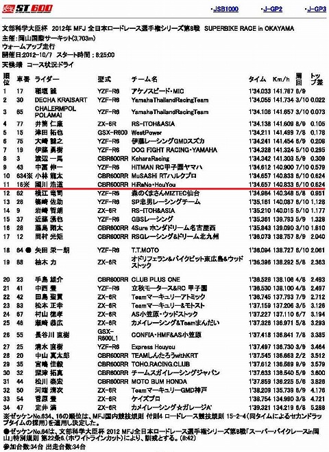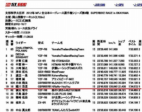 | 2012年10月7日(日) 全日本ロードレース選手権 第8戦 岡山国際(決勝) | |||