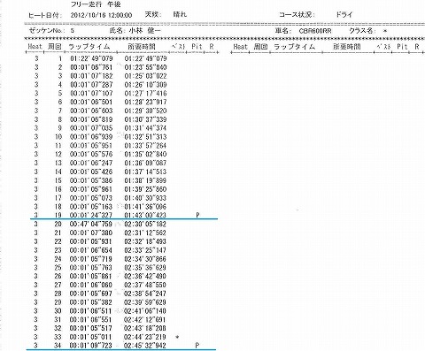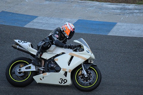 11:10-11:15 コースインして、最初のインプレションは「タイヤ固いなぁ。」 コーナーのアプローチでブレーキングをリリースしながら寝かしこんでいくと、フロントが跳ねます。 「おー手強いぞ!」 と思いながら、3周目にペースアップ。 レース終了後にタイムを見ると、3周目に4秒751 と思ったより悪くないタイム。 そして、フロントのエラーを気持ち0.1kg抜いて、模擬レースに臨むことに。 午前中のタイムを見ると、CBR1000に続いて2番目のタイムでした。 (^_^)v |