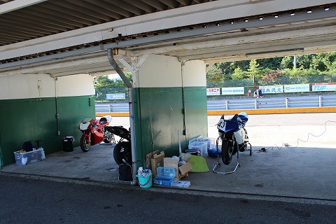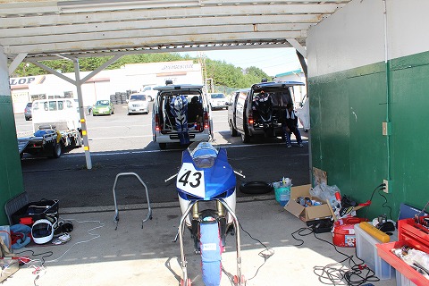 8:00 お隣の お隣のピットは、同じK2Yから参加のエビナさんと掛本くん。 こちらも走行の準備中。 |