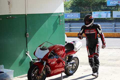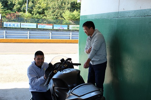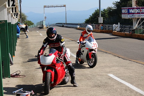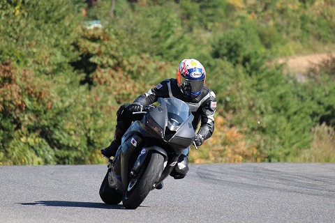 15:12 試乗 アイスエイジさんが一休みしている間、掛本くんがST600仕様のアイスエイジさんのCBR600に試乗。 サーキット仕様のバイクは、乗ったことが無いと、パッと乗ってもなかなか乗れない。 サスがサーキット走行に合わせて高荷重に設定してあるからね。 ペースが遅いとサスが動かなくて、グリップ感が出ないんだよね。 なので、グリップ感の無いのにスピードを上げたら、スリップする気がするんだよね。 ST600仕様に初めて乗った掛本くんもおっかなびっくりコーナーリング。 でも、スピードを上げてコーナーリングするとタイヤが路面に押しつけられて、鬼の様なグリップをするわけだ。 自分の場合、自重があるので最初からグリップしてくれるんだよね。(笑) |