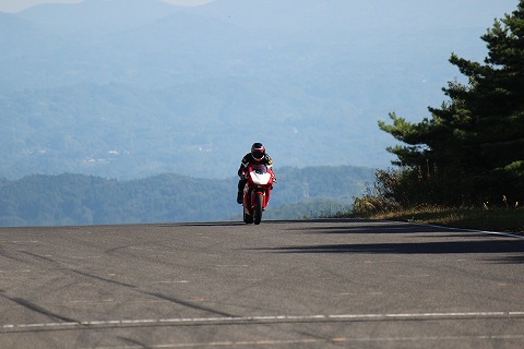 12:56 午後になって 午後になって、自分お腹一杯で走れません。(汗) 食休みを兼ねて写真を撮りますよ。 で、若い掛本くんは元気に走ります。 バイクは街乗りのフルパワー仕様。 タイヤはDUNLOPのα12。 |