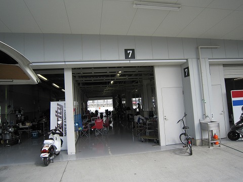 12:23 7番ピット 今回のピットは#7。 4台で1つのピットを使用。 内3台がST600クラスです。 |