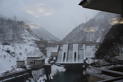 朝食を食べながら眺めるのは、黒部川を堰き止める宇奈月ダム。
