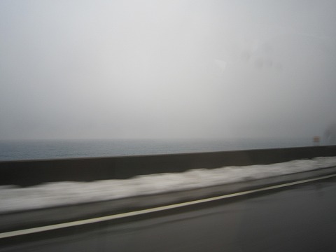 11:28 今日の日本海は ホテル黒部のある宇奈月温泉を出発して、県道を一路北上。 黒部インターから北陸自動車道に上がり新潟方面を目指し東進します。 昨日は晴れて穏やかだった日本海も、今日は雪が降り霞んで見えます。 |