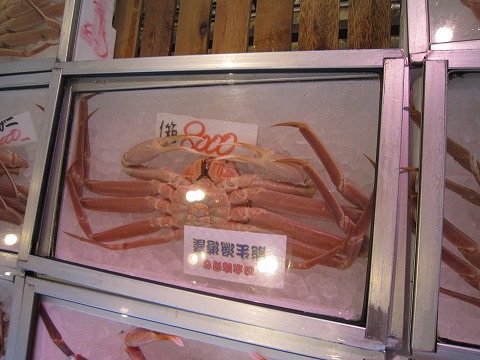 12:12 カニだ! 『いた! 居たねぇ。 生きたカニ。まだ動いてるよ。』 能生漁港で水揚げされた地元産のズワイガニ。 1匹¥8,000だぁ。 (@_@) 高すぎじゃございませんか? 同じサイズでオホーツク産なら¥3,000で購入することができます。 今回の旅行の目的の一つは、”カニの1匹大人買い!” 去年は食べられなかったからね。 今年は気合い入れてきたよ。(笑) しかし、¥8,000は高すぎる! オホーツク産の¥3,000のカニにしようかと思っていたところ、店の人に。 『能生産のカニは甘みが違うよ!甘みが! せっかくだから、能生のカニを食べた方がイイよ!』 ”せっかくだから”、と言う言葉にめっぽう弱い自分。(汗) 「まあ、カニを一人で一匹たべるなんて、一生に一度だから」と自分に言い聞かせて、¥8,000/匹 をお買い上げ! (>_<) |