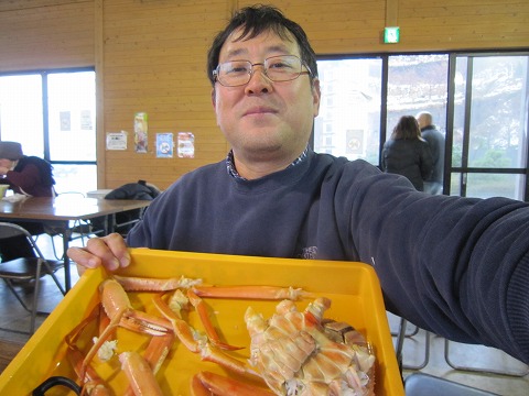 13:02 茹であがりました 道の駅 能生に戻るとちょうどカニが茹であがっていました。(^O^) これ一匹、一人でいただいちゃいます。(^0^)v いやぁ〜、大人買いだ。(笑) |