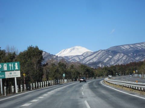 9:17 浅間山 上信越道を西走し続け、釜飯で有名な横川のサービスエリアに近づく頃には、目の前に真っ白に雪化粧した浅間山が見えてきます。 この先、碓氷峠を登れば、長野県に入ります。 |
