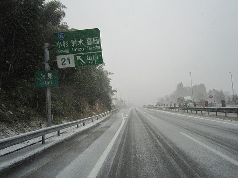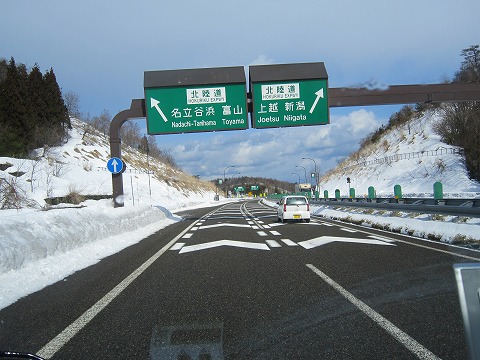 13:21 到着 富山県に入る頃に降り始めた雪もすでに路面を白くしています。 降雪で速度制限の中、富山市を過ぎ、射水市にある小杉インターに到着しました。 今回の仕事先は、このインターを下りてすぐのところにあります。 インターを下りたら、少し遅くなりましたが、昼食を食べて仕事場に入ることにします。 ここまでの距離 476.1km、所要時間7時間22分でした。 |