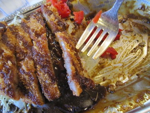 11:30 カツは薄め カレーのルーは濃厚でちょっと辛めかな。 ただ、もらったレトルトのときにも感じましたが、より塩分を強く感じます。(煮詰まってしまったのか) かなり濃いめの味なので、たぶん女性受けはしないかな。 店内を見渡しても、たしかに女性のお客さんの姿は見当たりませんね。 カツは薄め揚げられカリッと歯応えが良いですね。 ただかなり薄く、ハムカツ感覚ですね。(笑) 食器はスプーンは付いてこなくて、写真の様なホークで食べますが、カレーの粘りが強いので、これで十分食べることができます。 ココイチと比べて選べるトッピングが限られてくることから、チェーン店としては、お客さんも限られてくるんだろうな。と思います。 まあ、北陸にきてカレーをサクッと食べたくなったら、寄ってみてもいいかも。 他に”カレーのチャンピオン”もあるけどね。 『ご馳走様でした。』 |
