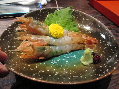 19:24 ガメエビ 地方の料理を訪ねての楽しみは、その地方にしかないものを食べること。 お品書きを見ていると”ガメエビ”、聞いたことがないのでさっそく注文。 ガメエビは、甘エビよりも少し大きく、ボタンエビよりやや小さめと言った大きさですが、形は頭がちょっとごっつい感じです。 さっそく食べてみると、生ですが身は締まっていてプリプリ、甘エビの様に身が柔らかな食感はありません。 味も濃くて、どちらかと言えばボタンエビに近い感じかな。 自分的には、甘エビよりもシロエビよりも好みかな。 |