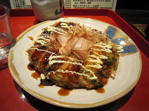 20:18 ととまる(とび丸) これだけ呑んでくると、満腹中枢がちょっと壊れ気味。(笑) これも高岡流のお好み焼で”ととまる”と言うのがあって、トビウオのすり身と山芋で作ったお好み焼きで、名前はトビ丸。 サクサクで、これは美味しい。 居酒屋じゃなくて、単品でお好み焼き屋で出してもヒットしそうなクオリティーで、ちょっとビックリ。 味の判断が出来るってことは、まだまだ酔ってないね。(笑) |