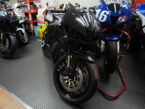19:59 店内には 店内に入ると、ゼッケン16番 國川くんのマシンが鎮座。 その手前には、無塗装のCBR600RRが! カウルの形が、そしてホイールがちょっと違う。 そう、2013年のレースベース車が届いてました。 |