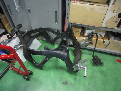 20:04 フレームも そして、フロントのフォークは転倒もあったりして、交換、オイルの交換などをしていますが、リヤサスは自分が所有してから一度もメインテナンスをしたことがなかったので、ついでにリヤサスのオーバーホールも依頼しました。 そして、フレーム単体だけになって、ピットの片隅に。 『清水さん。 オーバーホール、よろしくお願いします!』 と言うことで、お店の中はここまで。 |