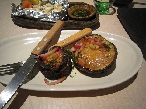 20:45 のと115 知っている人は知っている。 知らない人はまったく知らない。 自分も知りませんでした。 ”のと115” シイタケです。 石川県特産のジャンボしいたけ。 身が大きくて肉厚。 冬場の特産品だそうです。 そのシイタケのバター焼。 マッシュルームもそうだけど、キノコ類はバターソテーにあいますね。 この肉厚のシイタケも香りがたって、旨い! シイタケは火を入れると、妙に小さくなっちゃたりするんで、なかなかバター焼にして食べようと思うシイタケは少ないですよね。 |