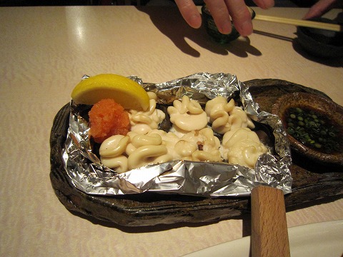 20:45 白子昆布焼き 続いて、やっぱり冬の食材、鱈の白子を使ったホイル焼き。 下に昆布が敷いてあって、昆布の旨味が滲み出し、それを白子が吸ってウマウマです。 (´。`) 普段、白子ポン酢とかにして茹でて食べることが多いですが、焼くと水分が蒸発して、白子の味がより濃密になりますね。 |