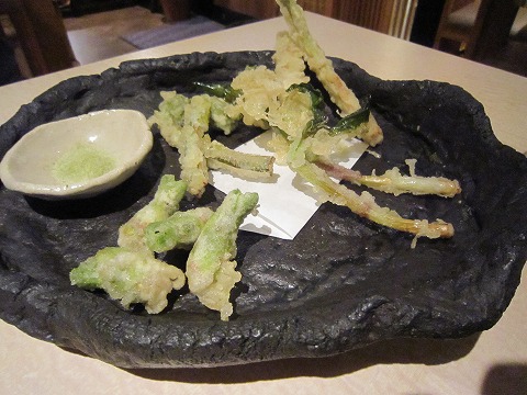 21:49 山菜のてんぷら ちょっと時期的に早い気もしますが、山菜のてんぷら。 上品にカラッと揚がってます。 やっぱり、山菜は塩でいただくと、香りが引き立ちますね。 |