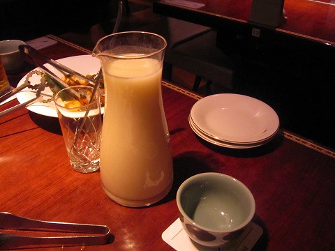 18:02 マッコルリ ビールの後はマッコルリ。 以前は、レモンハイとかが多かったけど、最近はビールの後はマッコルリに走ることが多いですね。 四合入って、このお店としてはリーズナブル。 店に出す飲物のチョイスも流石叙々苑、そつがなく、クセが無い飲みやすいマッコルリ。 で、飲み過ぎちゃう訳です。(笑) |
