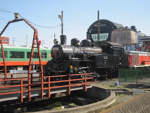 蒸気機関車 駅の横にある車両基地には、蒸気機関車が置いてありました。 置いてある機関車はC11。 C11のCは駆動輪の数を表し、A=1から順番にB,Cと片側3つの駆動輪、左右で6個の駆動輪を表します。 ちなみに、D51の場合はDなので片側4つの駆動輪を持ちます。 C11は自分が小さい頃、母親の実家があった鹿児島県で走っていた機関車ですね。 この機関車は休日とかに運転されるようです。 |