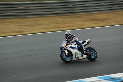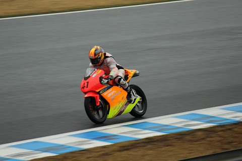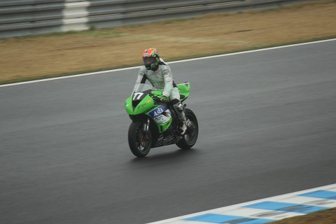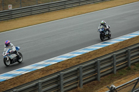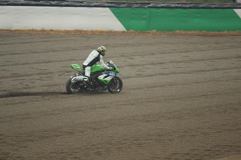 12:08 怒濤の追い上げ 写真がイマイチですみません。 まさかここまで追い上げてくるとは予想していませんでした。 昨日の予選、黄旗区間で転倒したため、予選タイムが剥奪。 最後尾からのスタートとなったのは、#11横江選手。 怒濤の追い上げで、8周を終えた時点で5番手まで上がってきました。 |