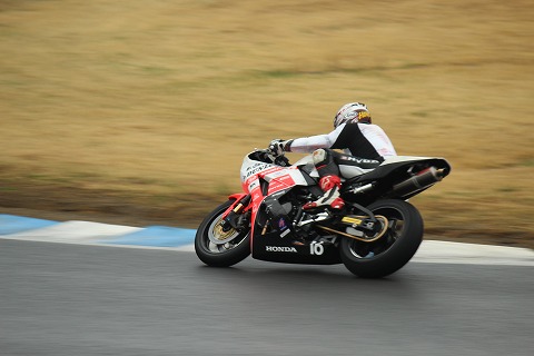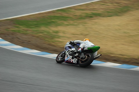 12:03 徐々に追い上げ #13岡村選手。 朝のフリー走行で転倒した様ですが、大丈夫の様です。 九州出身の岡村選手にとって、もてぎは練習量の少ないサーキットです。 マシンもタイヤメーカーも変わり、昨日の予選は25番手。 決勝では、徐々に追い上げ、17〜18番手あたりを走行中。 |
