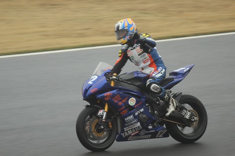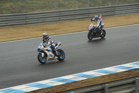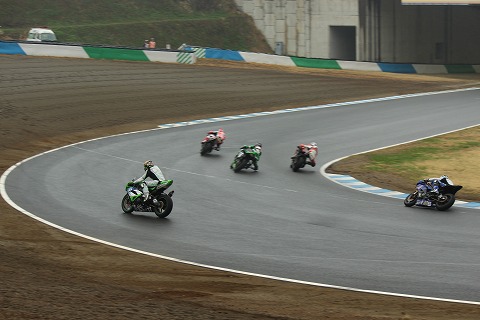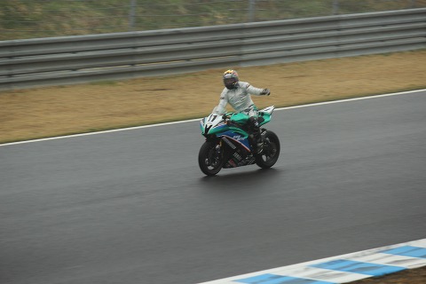 12:24 優勝 12周目以降トップを守りきり、優勝は#65のチャランポン選手でした。 結果、マシン別に見ると 1位〜4位までがヤマハのR6、5位にカワサキが入り、 6位にホンダ、7位もポールポジションからスタートした渡辺選手のホンダが入りました。 今年ホンダはCBR600RRのマイナーチェンジをしましたが、このレースを見る限り、ヤマハ優位だったと言えるようです。 またタイヤ別に見ると 1位 ピレリ(レインタイヤはBSを履いていたと言う噂も・・・定かではありませんが) 2位、3位 ブリヂストン 4位 DUNLOP、5位 ピレリ、6位 ブリヂストン とややブリヂストンが優位だったのかな。 レインタイヤについては、雨の量とかそのときの路面温度とか各社レインコンディションの設定が異なるので、一概に雨なら”このメーカーが強い”と言えないようで、そのときの雨の状況によって、優位なメーカーが変わる様です。 |