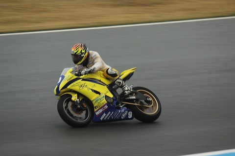 10:57 J-GP3決勝 ハイエースに忘れ物を取りに戻って(牛串を食べて)いたら、J-GP3の決勝が始まっていました。 久しぶりの全日本観戦なので、コースのあちらこちらに行って写真を撮りたかったのですが、相変わらず小雨が降り続けているため、安直にダウンヒルコーナーに戻ってきました。 カメラを構えていると、ちょうどダウンヒルを下りてきたのは、#41の宇井陽一選手。 確か昨年、一昨年と監督業をしていたと記憶していますが、今年は自ら走る現役復帰ですね。 予選11番手から、決勝では追い上げ4位でチェッカー。 流石百戦錬磨のベテランです。 マシンは、HONDAのNSF250ではなく、IODA。 |