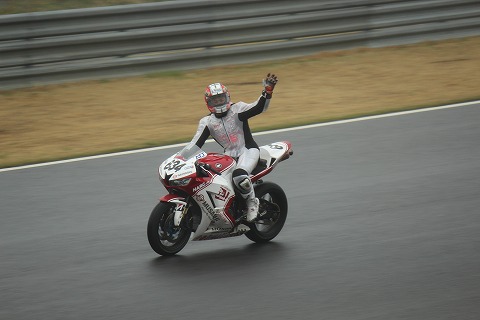 12:23 3位 ウィニングラップでダウンヒルストレートを下りてきたのは、#11の横江選手。 最終ラップに3位を走る#9の稲垣選手をかわし、3位に。 最後尾からスタートし、驚異の33台抜きで、表彰台獲得です。 (凄い!) レース中のベストタイムも横江選手が記録しました。 |