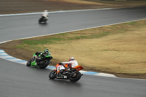 16:07 4、5番手 そして、4、5番手は、#87のカワサキの柳川選手と#104 トーホーレーシングの山口選手。 山口選手は前の周回まで4位を走るものの、マシンの調子が悪くなったのか最終ラップに柳川選手に抜かれ5番手に後退。 この写真の順番でチェッカーを受けました。 4位チェッカーの柳川選手も前の週の全日本の合同テストで転倒し、本調子からほど遠いコンディションでのレースだったようです。 この2人のライダーのレース中のベストタイムは2分01秒台。 |