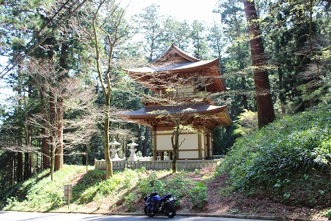 10:01 寄り道 南足柄広域農道から、山中湖の先にあるうどん屋さんまでは1時間ほどの道のりです。 今、10時になったばかりなので、このまま直行すると11時にはうどん屋さんに着いちゃう。 さすがに11時は早過ぎるので、農道の通りがかりにある大雄山最乗寺に寄り道をすることにしよう。 大雄山最乗寺は曹洞宗のお寺だそうですが、下の山門から境内まではおおよそ2キロちょっとの距離がある結構大きなお寺です。 こんな神奈川県の西の外れの南足柄市にあるのが不思議といえば不思議です。 もう少し、時期が早ければ桜が見られたんでしょうけど、流石に今年は桜が早くて、ここでも既に葉桜になってました。 とりあえず山門の脇で写真を撮って、移動します。 |