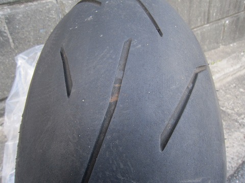 17:20 タイヤの溝がない? 明日から、山陽・山陰地方にツーリングに行くので、R1の整備をしていました。 タイヤを見ると、思ったより溝がありません。(?_?) 5分山切ってますね。 去年車検を切る直前にタイヤを交換したと思っていたのですが、整備の記録を見ると2011年5月に25,509kmで交換しています。 現在の走行が27,726kmなので、走った距離は、2,217km。 予定の走行距離をgoogle map で概算を出すと2,000km以上! 『まずいね。交換しないと。』 今日の今日じゃ、K2Yに行っている時間がないので、近所の大型バイク用品店へ。 |