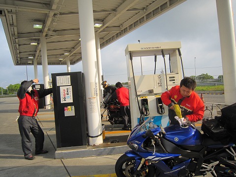 9:07 草津PAに到着 伊勢湾岸道の刈谷パーキングでカッパを着た後、伊勢湾岸道→東名阪道→新名神自動車道を西進して、草津パーキングエリアまでやってきました。 雨はまだ降り続いています。 ここで東名→名神ルートを走った男レーシングさんを待つことにします。 ここ草津PAもSHELLのスタンド。 牧之原SAからおおよそ236km、さすがに今回は燃料警告ランプが点灯しました。 ここで、今日2回目の給油をします。 携帯にメールを送って、男レーシングさんをしばらく待ちましたが、来そうもありません。 時間的にすでに通過したようなので、一人で出発することにします。 |