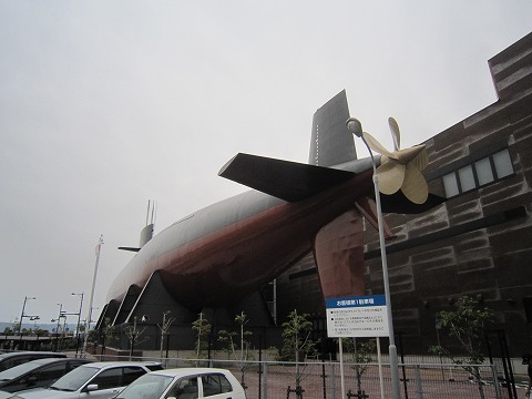 この潜水艦は本物で、以前海上自衛隊で”あきしお”の船名で使っていたものを除籍後に陸上に引き上げ、海上自衛隊呉資料館(てつのくじら館)として、一般に公開しています。