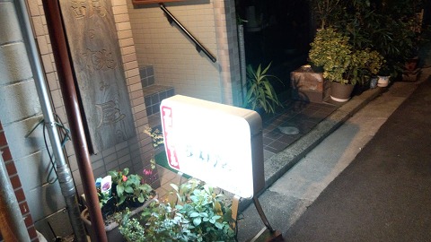 20:24 お好み焼き お店の看板が光ってダメっぽそうだったので、店の入り口にあるお品書きを撮影しなおしてみました。 でも、これも暗くて、ぶれちゃってダメだね。 お店は、通りから薄暗い路地に入ったところにあるビルの2階。 営業時間は9時までですが、お好み焼き屋で長っ尻はないから、大丈夫でしょう。 さっそく、階段を登って店内に入ってみることにします。 |