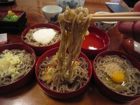 15:09 順番に つゆ自体は、かつおと昆布だけでなく、いりこを使っているようで、その旨味を感じます。 少し甘めですが、美味しいですね。 割子は味があっさりした順番でいただくことに。 薬味なしの次はナメコおろし。 残った汁は次の割子に入れて行きます。 ナメコの次は、玉子。 玉子を少し残して、4つ目の山かけに混ぜて。 そして、最後は天かすの順番で。 もとの蕎麦が美味いので、どの割子も美味しく食べることができました。 |