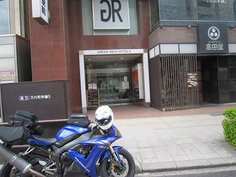 8:41 出発準備 朝食の後、部屋に戻って荷造り。 その後、駅の駐輪場にバイクを取りに行き、ホテルの前で荷物を取り付け。 出発の準備をします。 |