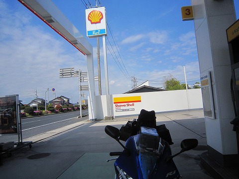 9:40 まずは給油 大山のワインディングに入る前に、まずはシェルのスタンドを見つけ給油。 地図を見る限り、大山から先GSは少なそうです。 |