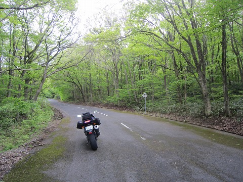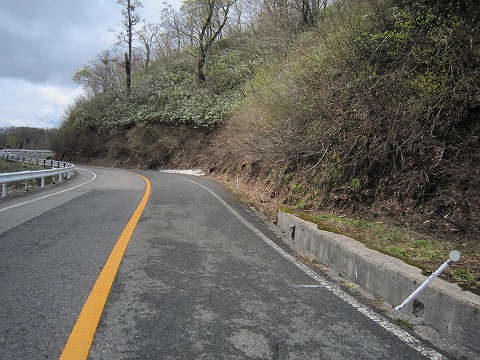 11:00 寒い! 県道45号倉吉江府溝口線に入り、バイクは標高を上げていきます。 標高を上げると同時に、気温もどんどん下がって、5月になったというのにかなり寒さを感じます。 ふと、正面の道路脇の日陰を見ると、残雪が! 『寒いわけだ! (>_<)』 初日のレポにも書きましたが、この寒さの中、今回急遽購入したライディングウェアーが大活躍。 このウェアーなければ、途中リタイヤは必至でしたね。 |