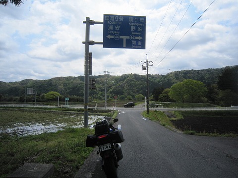 10:45 県道44号線に 県道34号線で山間部を抜け、周りが開けたと思ったら、ようやく県道44号東伯野添線に突き当たります。 道が良くなることを期待しつつ、ここを右折し大山周遊を続けます。 ここでツーリングマップルを確認すると、周遊道を半分ぐらい来た感じ。 まだ、同じ距離があると思うと、ちょっとげんなり、ルート選定を間違えた感がありますね。 |