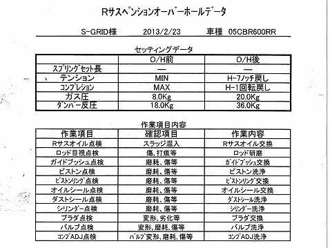 そして、写真を撮り忘れたので後付けですが、リヤのサスペンションもエンジンを降ろしている間に、I-factoryに送ってオーバーホールをしました。 点検の結果を見ると、当然ですが、ダンパーのガスが抜けちゃって3分の1くらいになってます。 (-_-;) そりゃ、2005年モデルで、8年も使っていれば、ガスも抜けますよね。 点検して、消耗品は交換しました。(^_^)v |